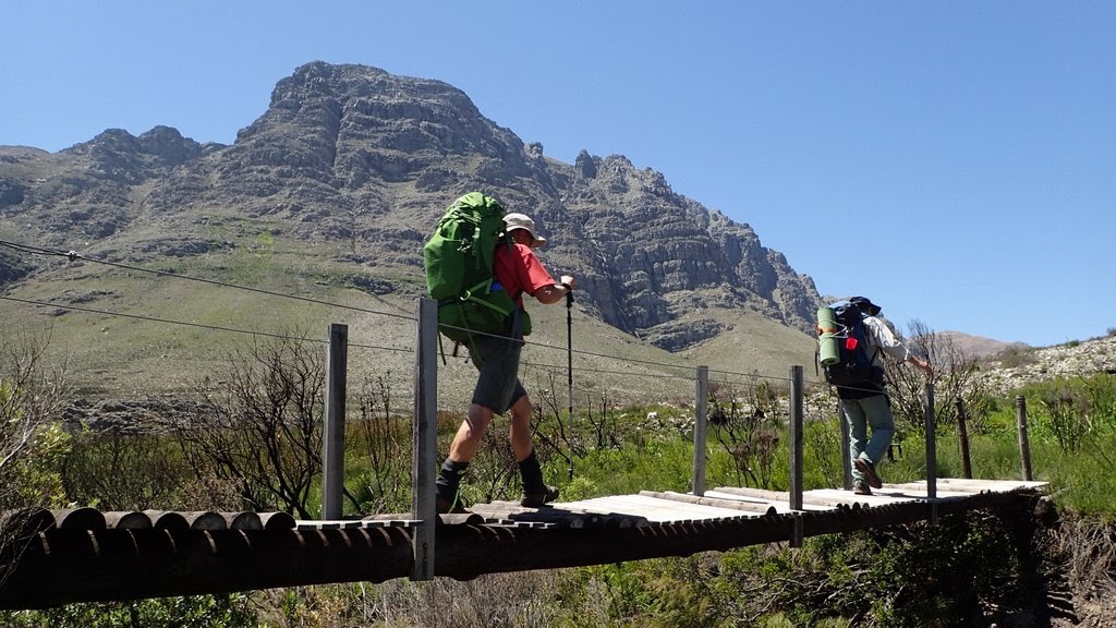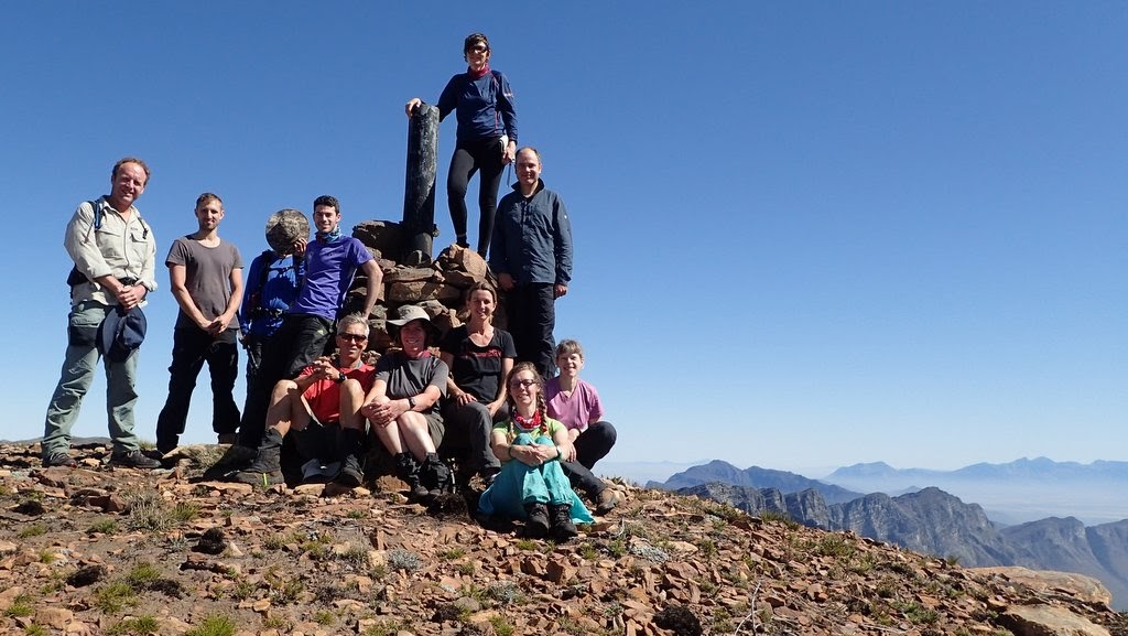 Gavin Sandeman, our MCSA meet leader, picked a perfect spring weekend for our overnight trip to climb Slanghoek Peak. A couple of days earlier we had seen a light dusting of snow on the Boland mountain ranges so there was plenty of water coming off the mountain as we hiked up the Happy Valley trail on Saturday morning. The perfect conditions encouraged some discreet skinny dipping in the Witte River by some (mainly on our return hike) and more sedate paddling by others.