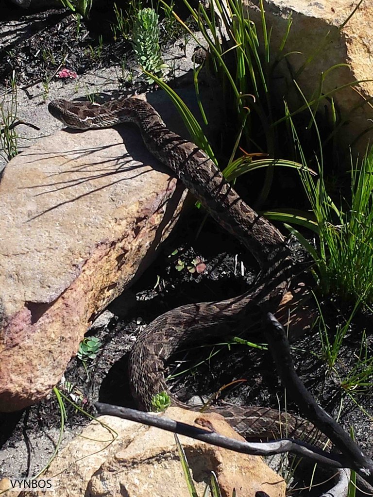 The area above Junction Pool had been burnt out by a fire earlier this year so finding our way to the saddle below Slanghoek Peak was a lot easier going than Torben Wiborg had found it when he did this hike previously. Some excitement on our Saturday hike was when Josh Weiss nearly stood on a berg adder (Bitis atropos)!