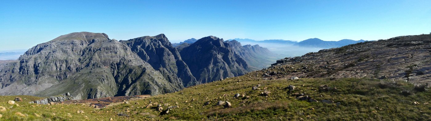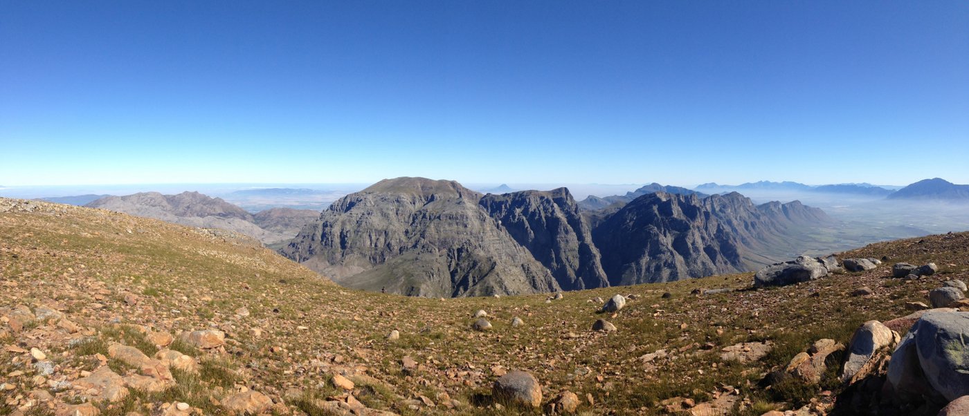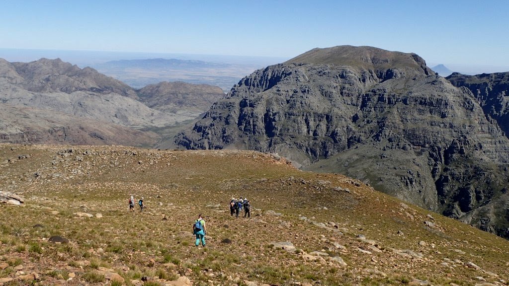 The hike back down to the saddle was uneventful and there was time for a brew as we packed up our gear before heading back. The route along the river was a mixture of faint path and boggy ground with some extra route finding required at times. Once back on the jeep track it was a case of heads down and think of what we would have for dinner. In our case steak on a braai and a very nice bottle of Slanghoek Shiraz to celebrate.