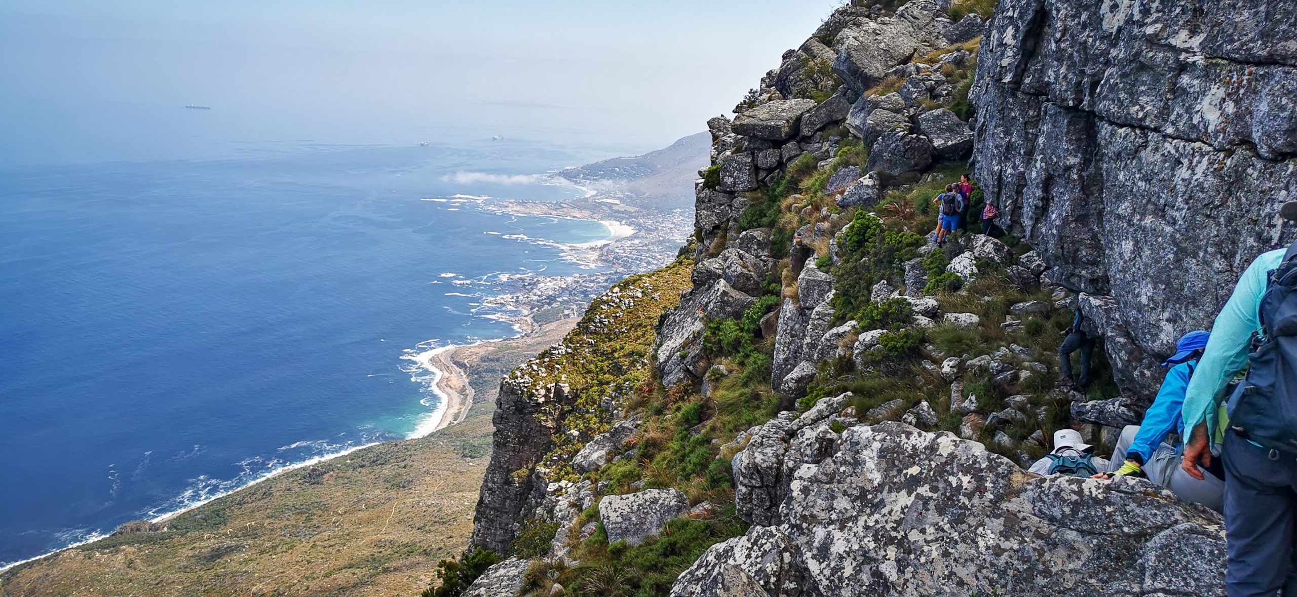 A group of 16 met outside Ryterplaats at 7:00am in best weather conditions. We went up Llandudno Buttress and enjoyed the views on top during a first breakfast break.