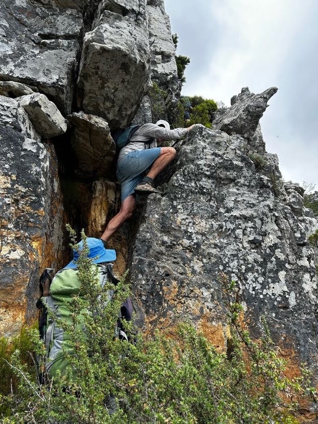 From there we continued to Grootkop and accessed the faint path leading to Yellowwood Traverse. Another break and some cave exploration later, we happily scrambled up the “B”route on the Northern side of Grootkop, enjoying another cave system and numerous fun scrambles.