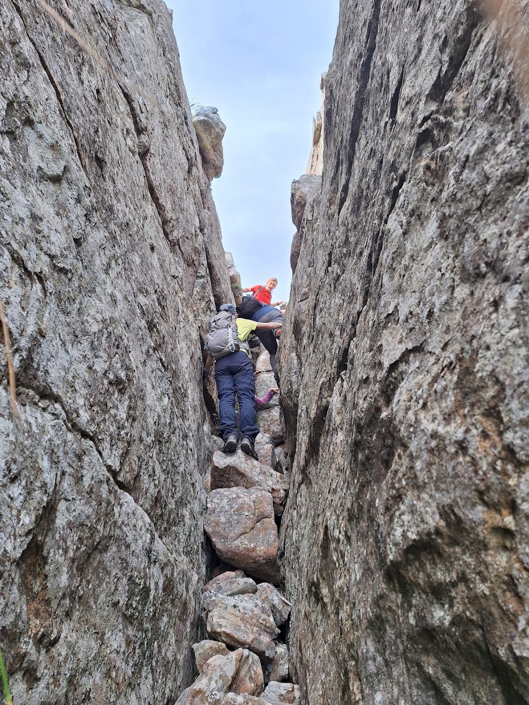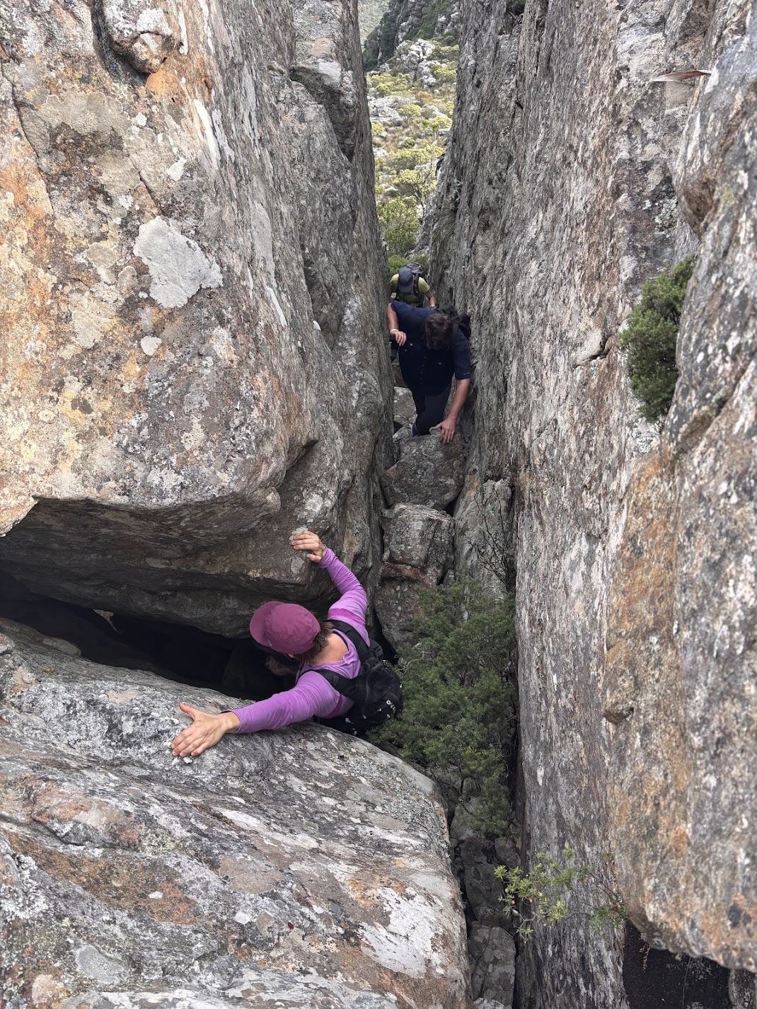 From there, we walked down the first third of Blind Gully, before then traversing across to Porcupine Ravine. As it is such a classic and beautiful spot, we stopped again for a third stop in the overhang half way. Shortly before entering Porcupine Ravine, we lost the trail for some meters, and by accident came across some stunning cracks which we explored.