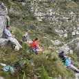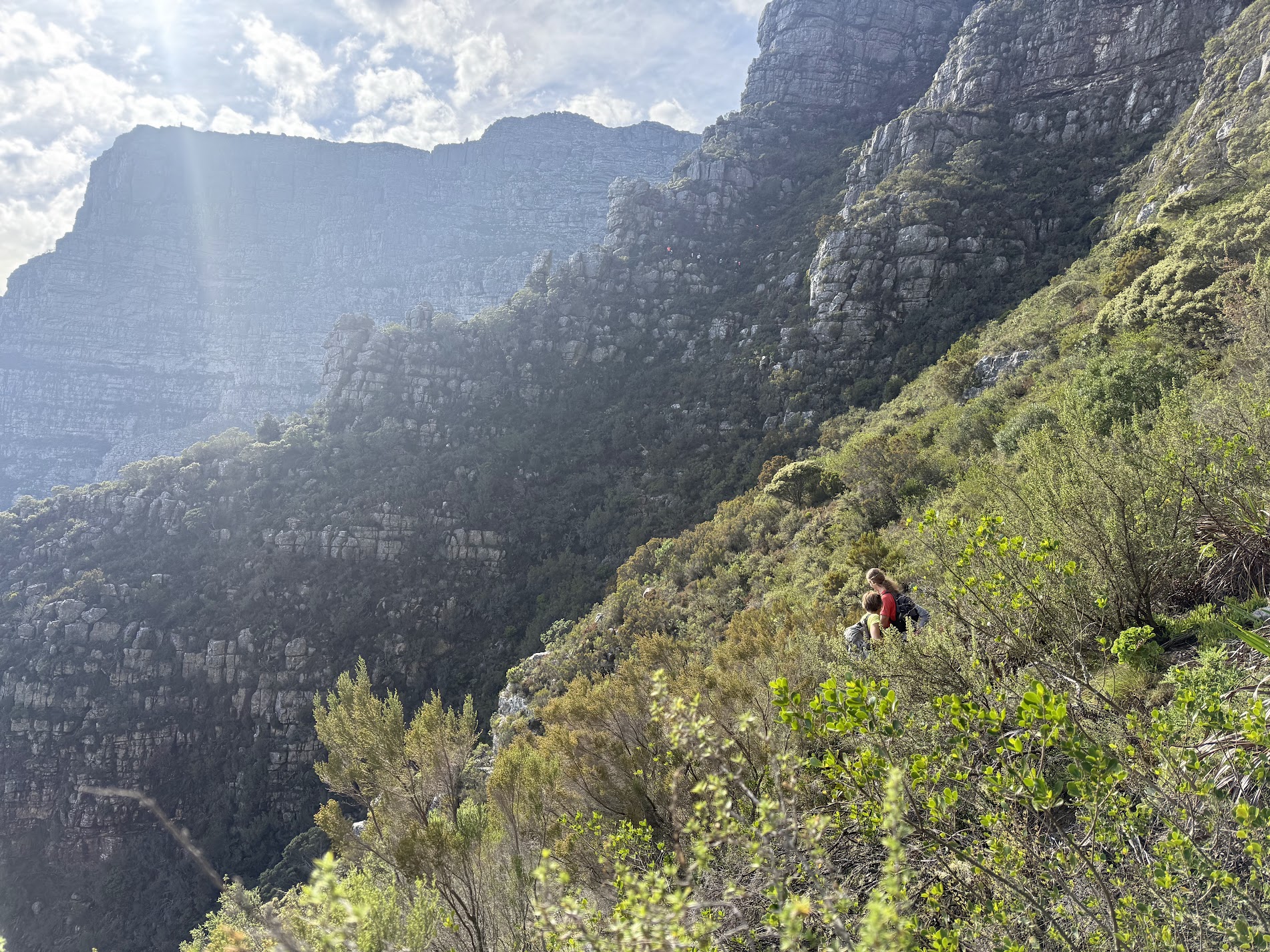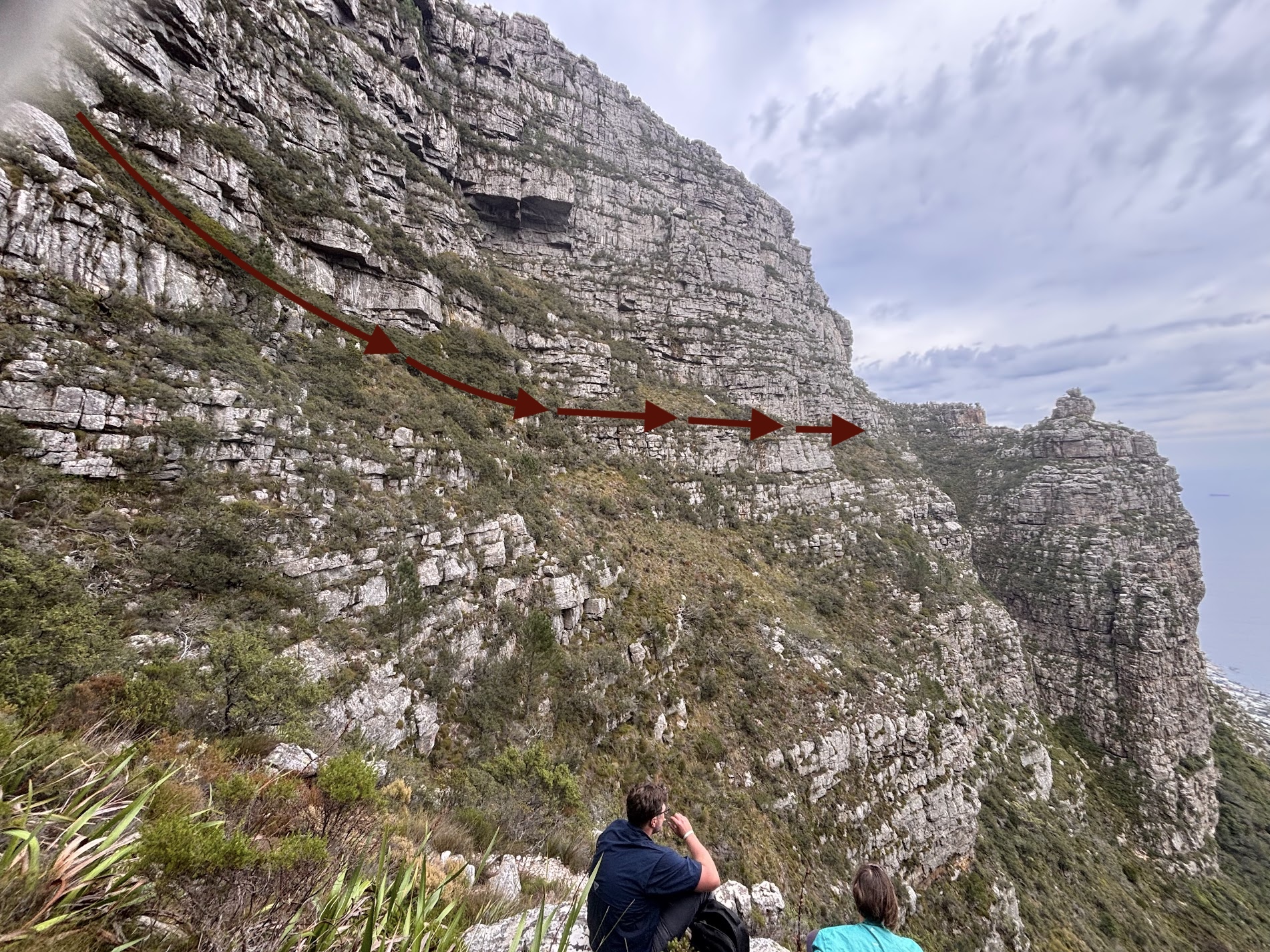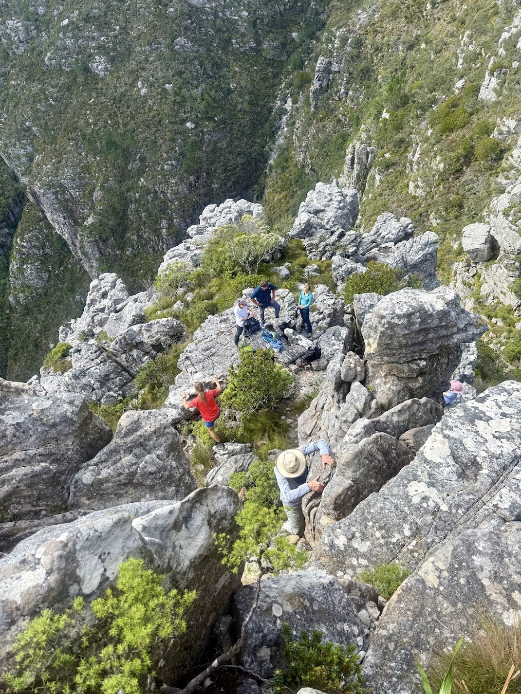 In Porcupine Ravine, most of us walked down, while two of us continued to explore the third traverse — the Jackson Traverse — which leads out of Porcupine Ravine at an altitude of 840 metres and up to the top of Jubilee Buttress.