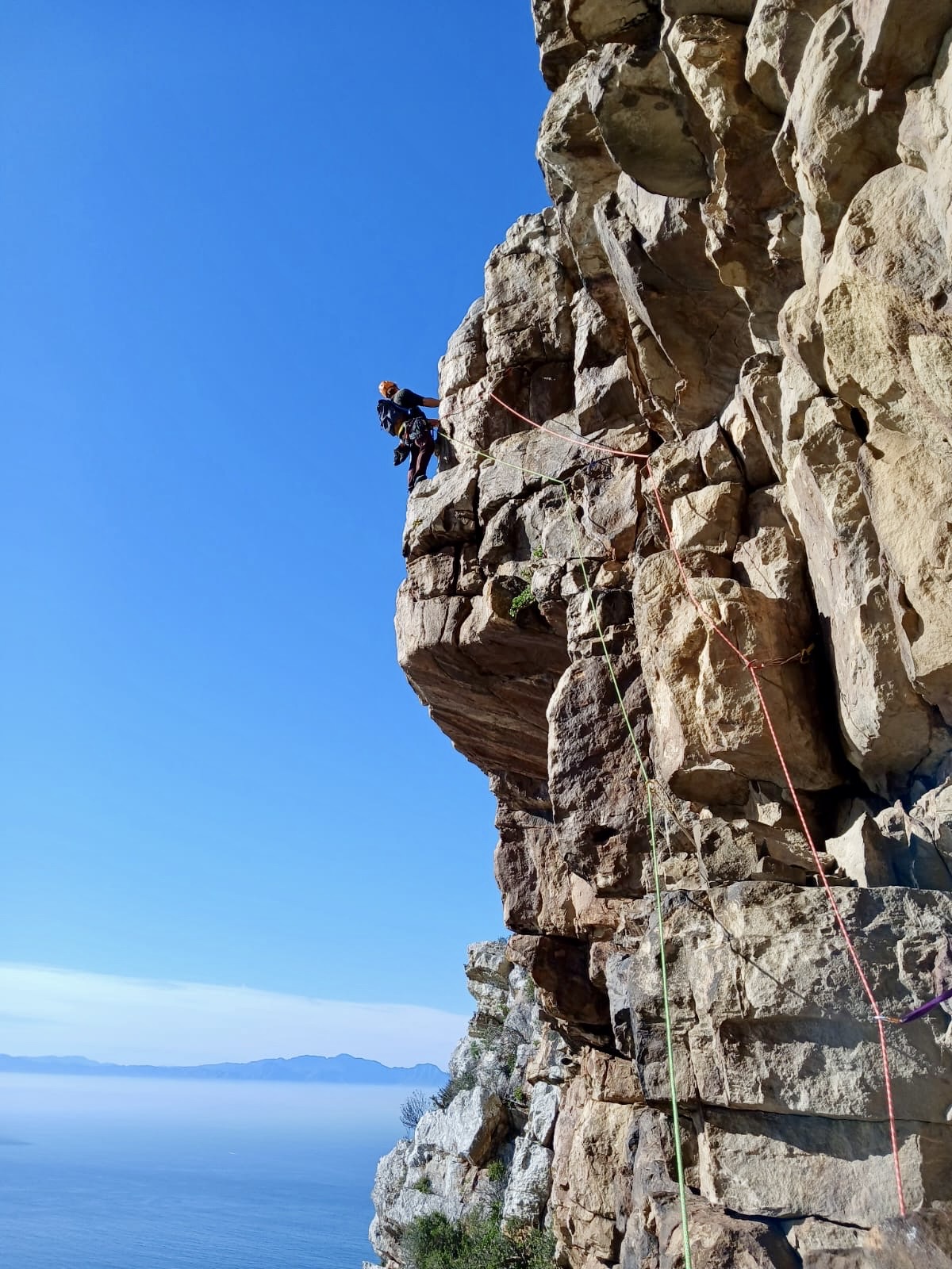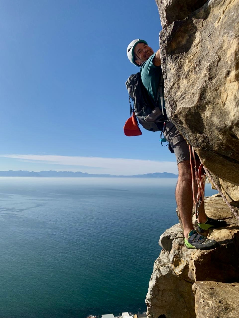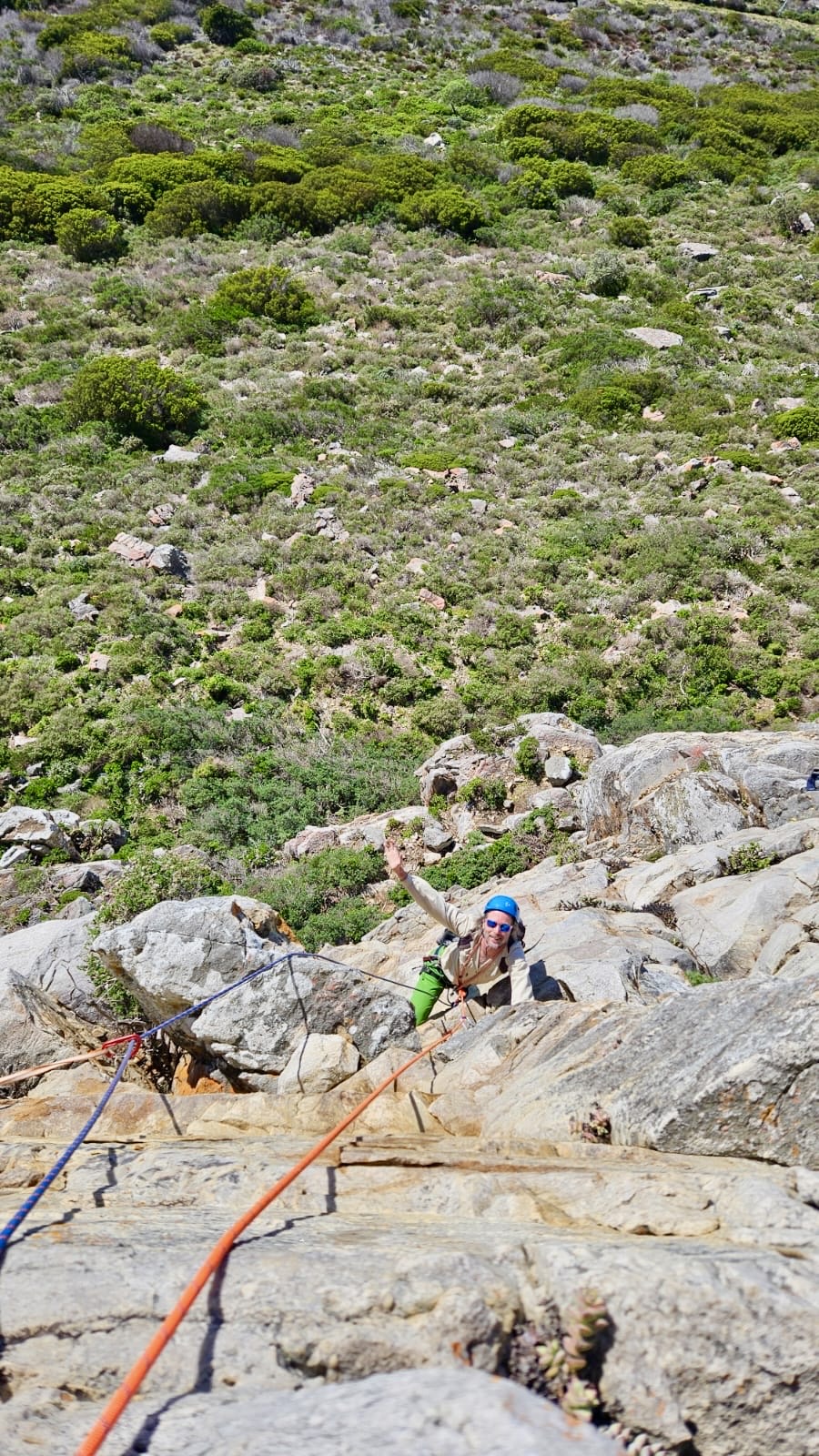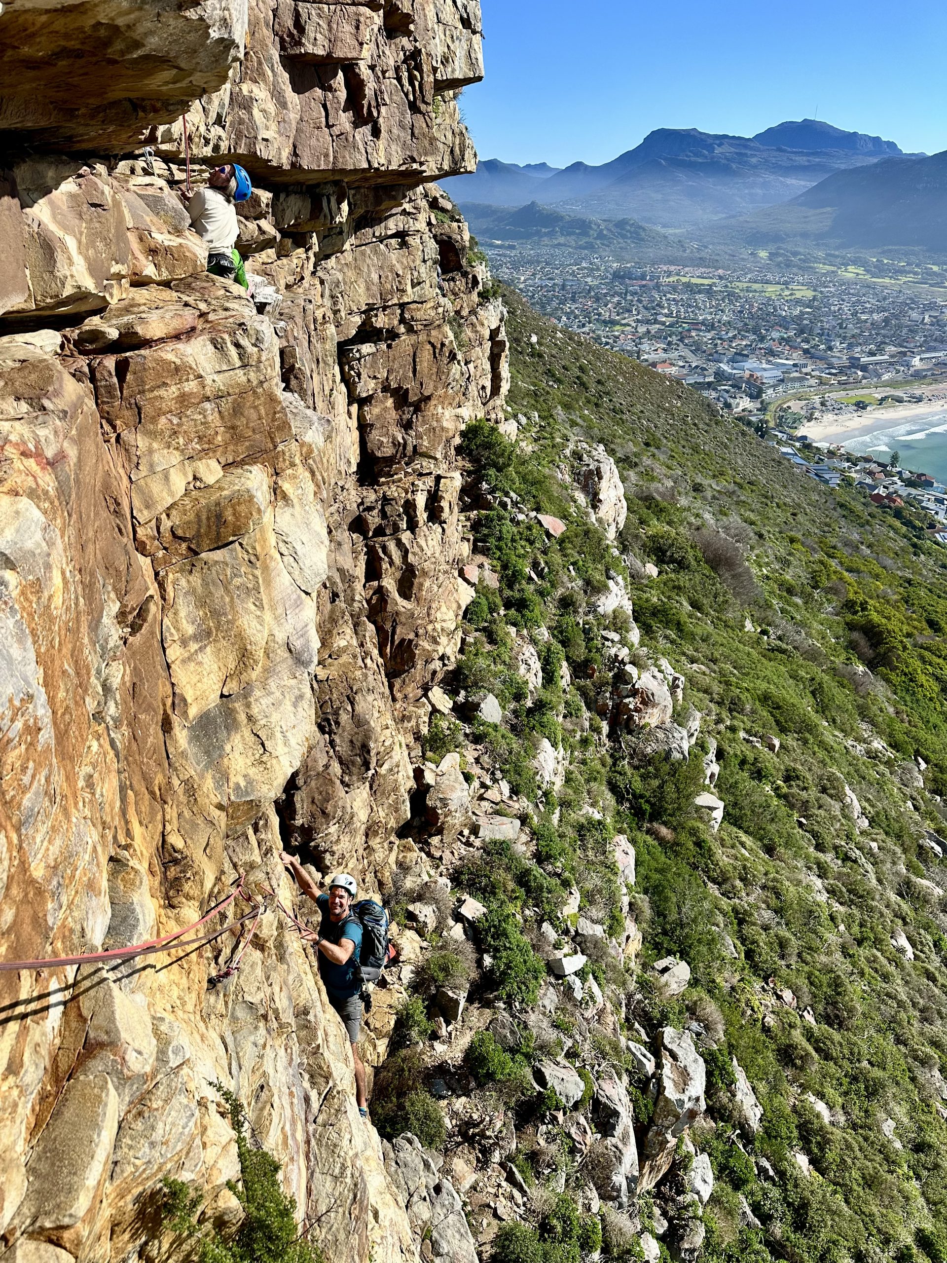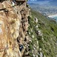 22 climbers, with experience ranging from total novice trad climbers to extremely experienced climbers, met at the shark spotters hut in Fish Hoek. Partners were introduced, gear was distributed and everyone headed up to the cliff. Parties spread out over the large sun baked rock face, close enough for banter but spaced enough to be able to enjoy the experience.