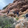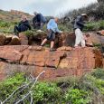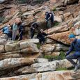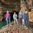 After meeting at the gate of the Cape Point section at 08h00 nine of us set out from the Rooikrans carpark around 08h35 for the descent to the ledges. The wind was gently from the SSW, nowhere near the predicted speed, and the sea was very calm. After checking the main ledge, we decided to visit the Cave and scrambled a short way up before traversing southwards. We then descended slowly and carefully on the awkward pitches. Three members chose to view the Cave from a few pitches up, with six of us making it safely to the bottom. It’s always an awe-inspiring experience to enter the Cave and especially so for the first time.