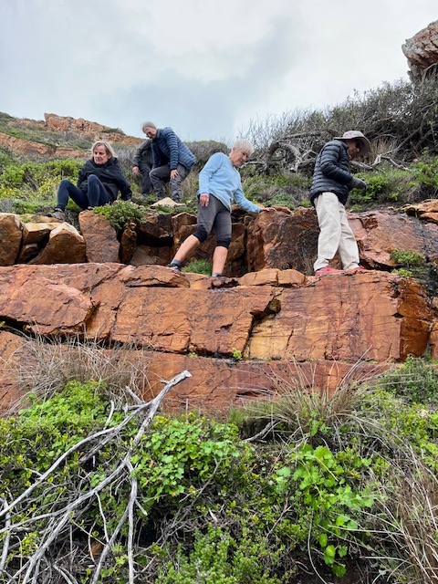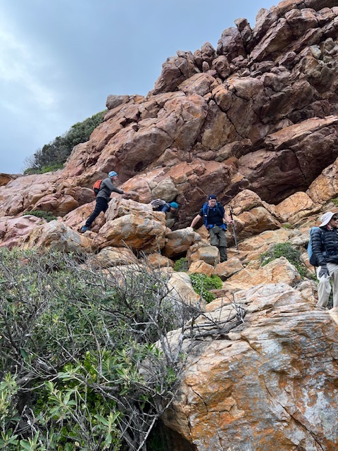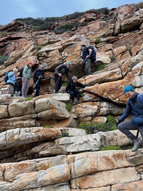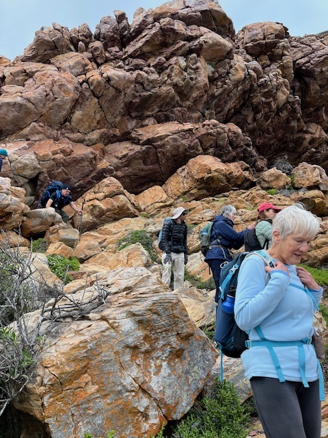 After soaking up the special atmosphere for a fair while, we joined the others and ascended to the halfway mark for our beverage break. We then climbed up to the car park and finally headed out on the planned route towards Smits. We followed the coast through Buffels Bay and Bordjiesrif to the Venus Pool parking spot where we turned inland and upward to build an appetite for our lunch stop at Kanonkop.