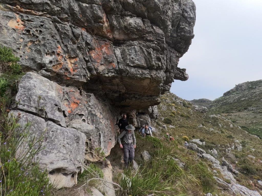 Twelve hikers joined me on this hike which covers very familiar ground. The day was overcast & mild with barely a breeze until the top. We branched off towards Nursery Ravine: most of the company were willing to negotiate the short, exposed section via the cave and overhang at the top Nursery Buttress. We were reunited with the rest of the group for a pleasant tea stop among the rock formations.