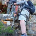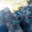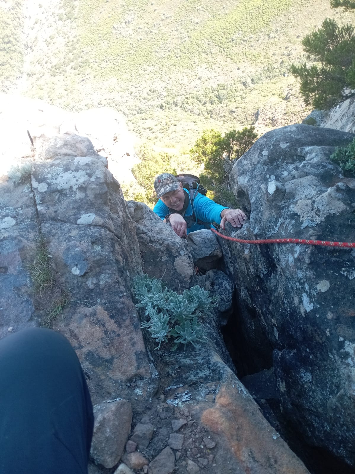 A rope was used on the first C pitch and the chockstone pitch, which is also graded C