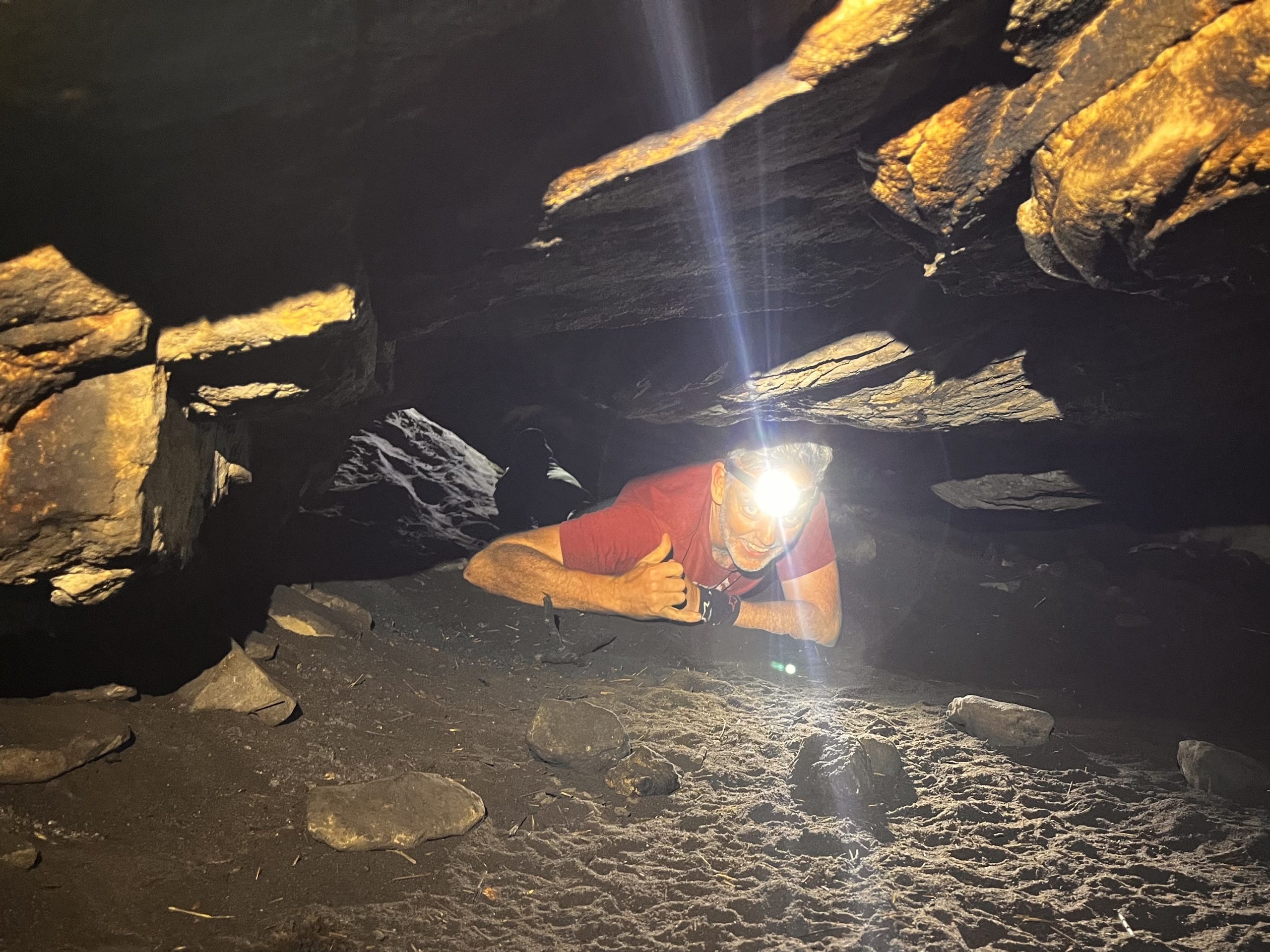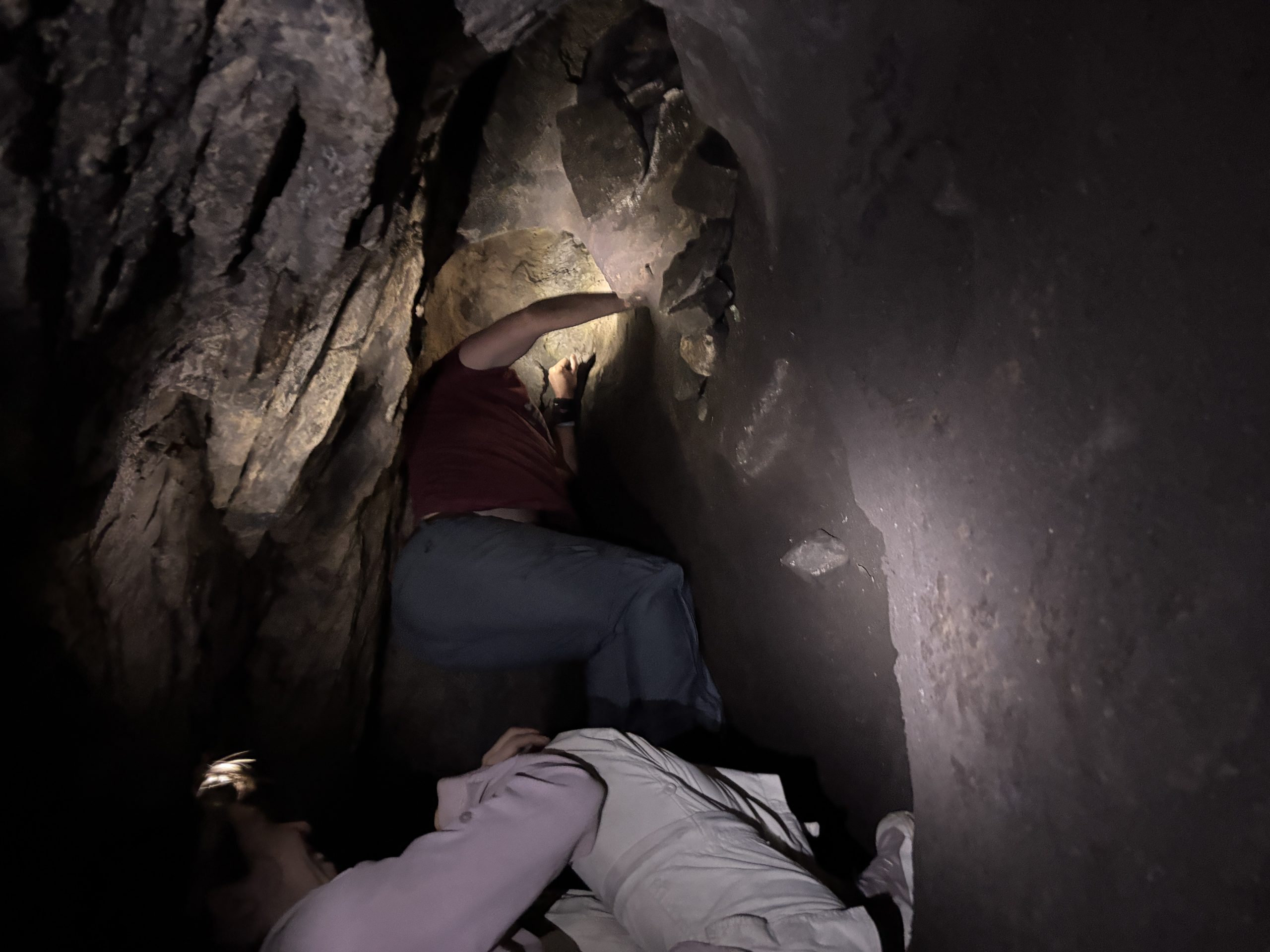 The second cave on the agenda was Muizenberg Cave, and after seeing how well everyone handled the tight squeeze, it was decided, without consultation, that we would take the far more interesting South-East entrance. This involved some leopard-crawling before reaching the main chamber. We took a few pictures and then did a loop, exiting via a different entrance.