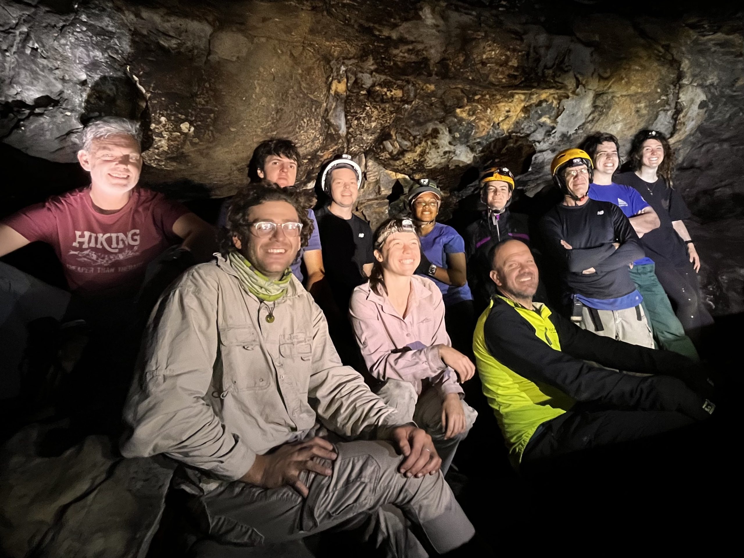 Labyrinth Cave, named for its many interconnected passages, makes for a very interesting visit — especially if you choose the tight-squeeze variation on the exit (which everyone opted to do!). The cave wasn’t as wet as expected, but we still managed to see evidence of the numerous streams that carved it out, as well as the spectacular “glittery moss” (actually droplets of water on a type of bacterial biofilm).