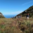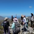 We had a strong SE wind to contend with on our ascent of Porcupine Ravine. Fortunately it had abated somewhat by the time we reached the top. Tea was enjoyed amongst a group of cavernous rocks on Ark Ridge which gave us shelter from the wind.