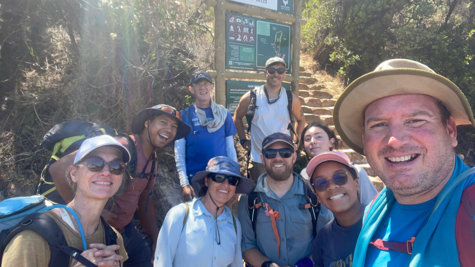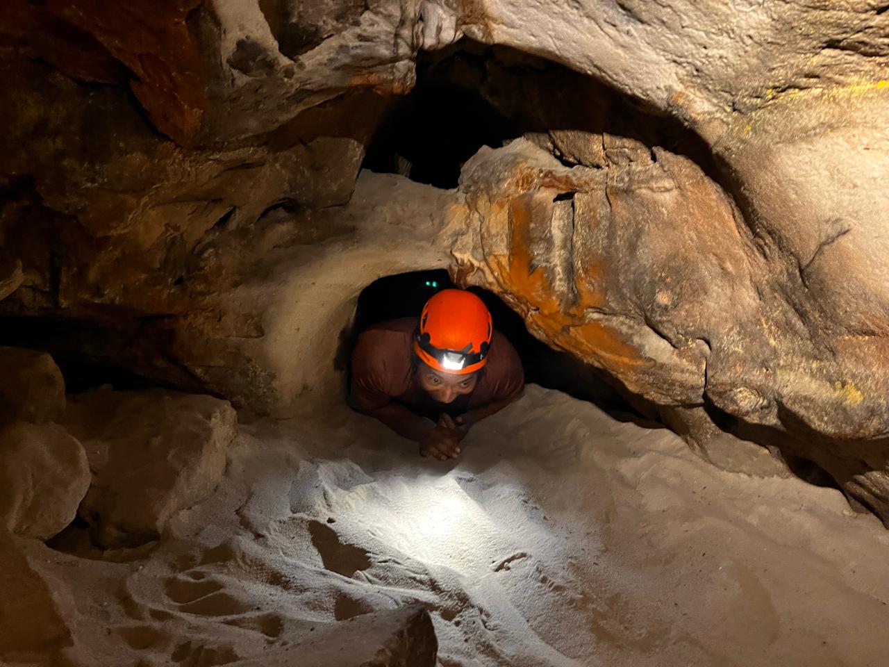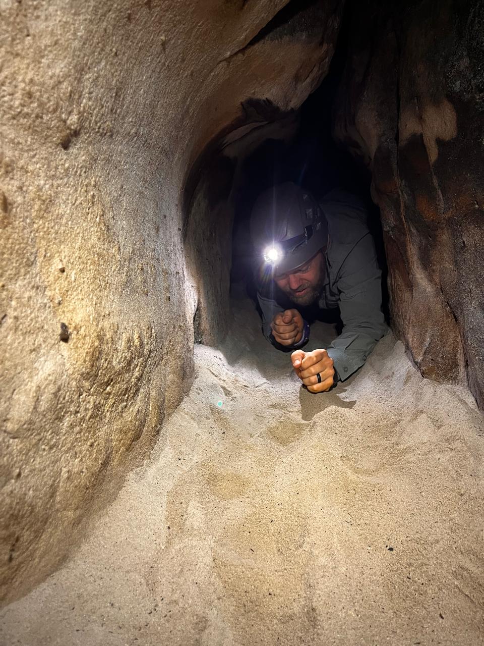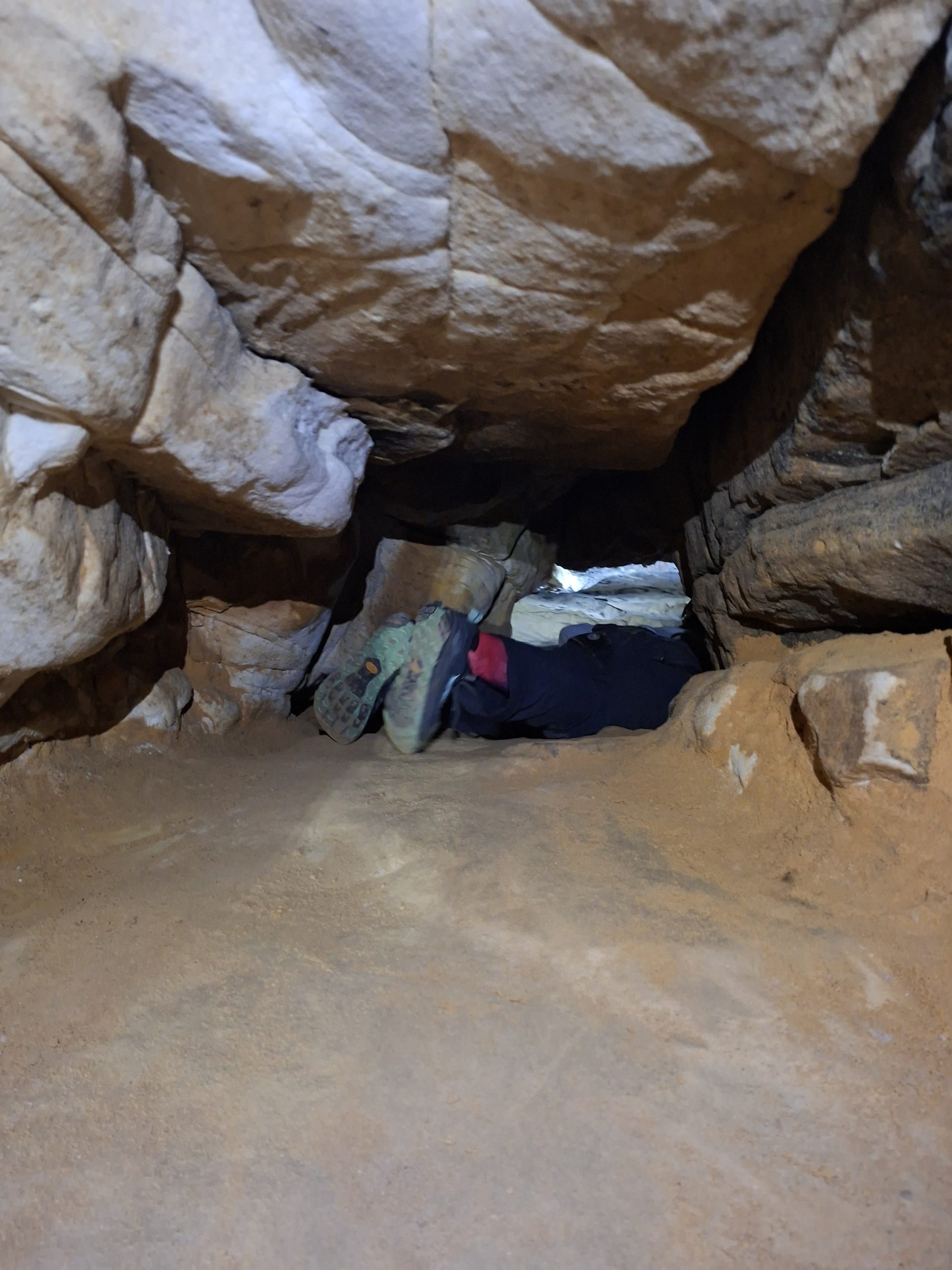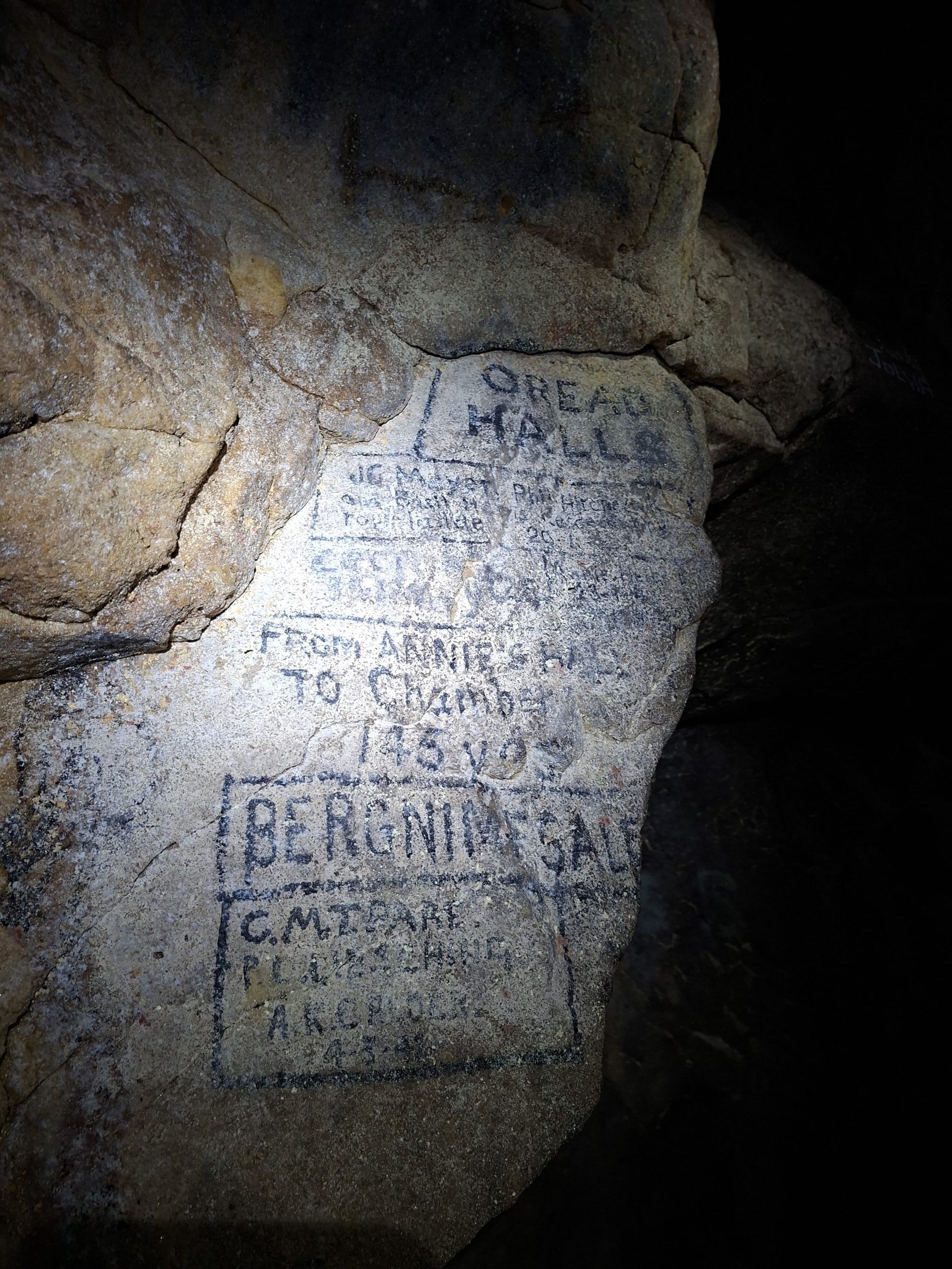 We then made our way toward Echo Valley, but with a little extra time on our hands, we decided to give White Dome Grotto a go. Here, everyone experienced even tighter squeezes than before, and it quickly became quite crowded! After emerging from the darkness, we headed into more darkness — aka Boomslang Cave — and were surprised (considering the recent fires) to find that some bats had returned for their winter roost. Even more surprising was encountering a few other MCSA members meandering around underground. After a quick hello, we did a short loop around the bat chamber and crawled out through the North entrance before finally making our way back down to the cars.