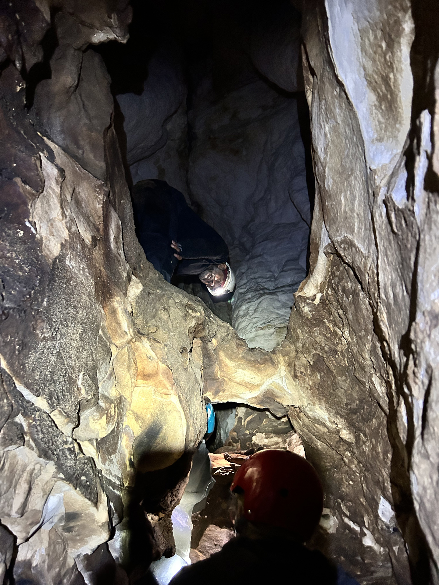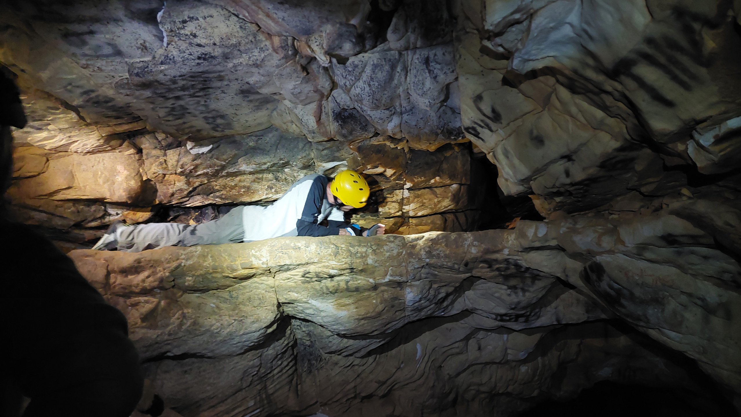 The vertical cracks and tight squeezes on the way down into Robin Hood Cavern typically has first-timers questioning their life choices, and wondering what exactly it is that they’ve signed up for. However, once through the initial birth canal, things gradually begin to unfold, and it becomes clear what the point is.