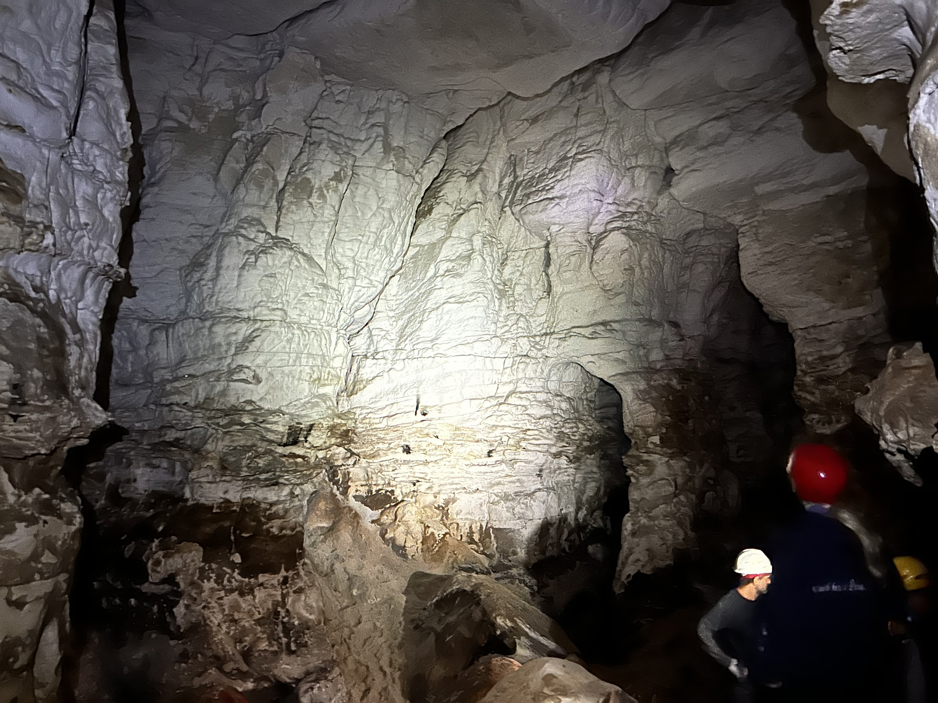 To temper the shock, a warmup visit to the charming Oread Halls cave helps to ease the cavers into the swing of things. With the skylight chamber, the silver, golden and copper twinkling stars on the passage rooves (micro droplets of water which twinkle in torch light), and the main chamber complete with mezzanine crawl-through, this cave is almost too endearing for what lies ahead.