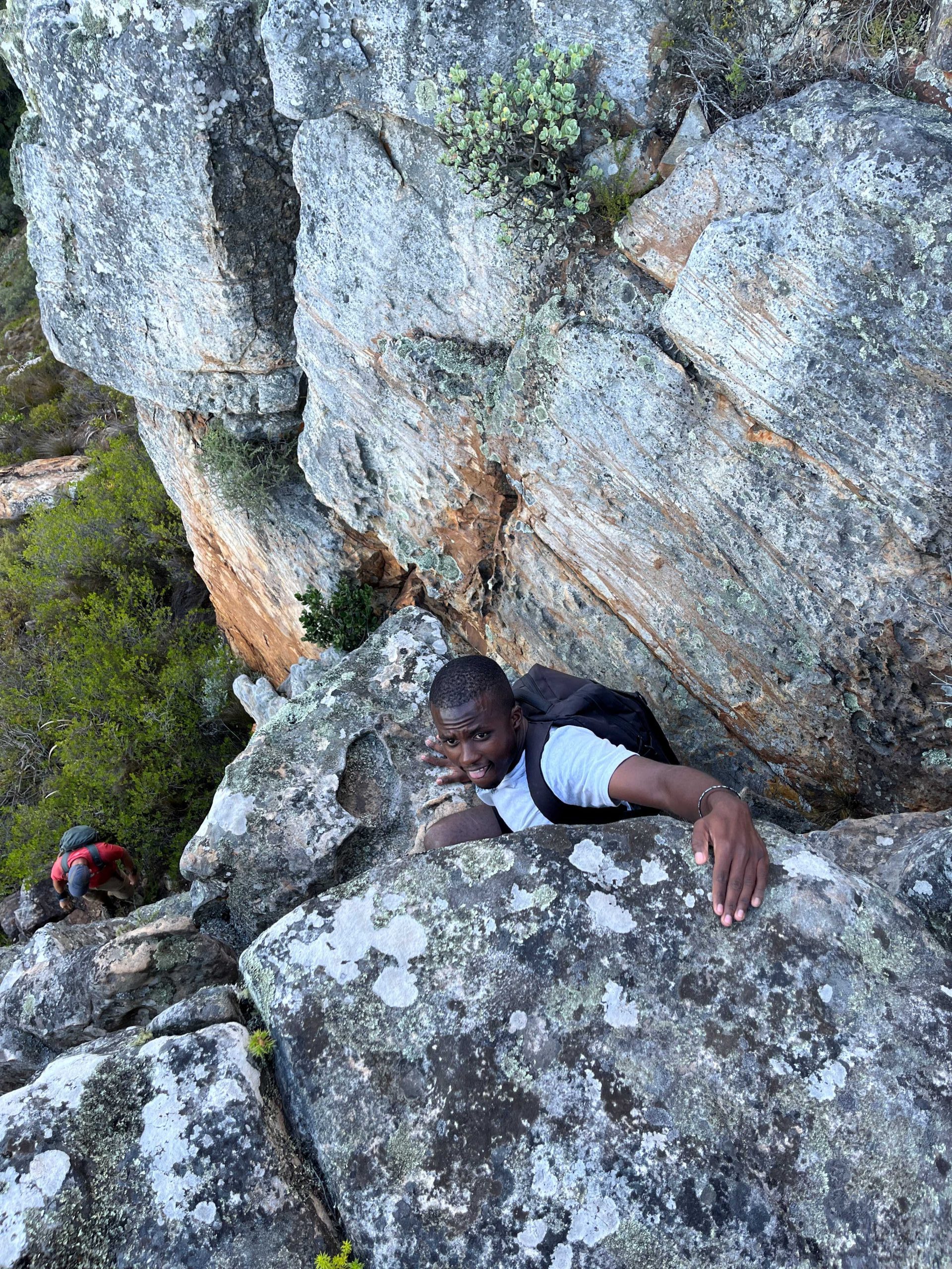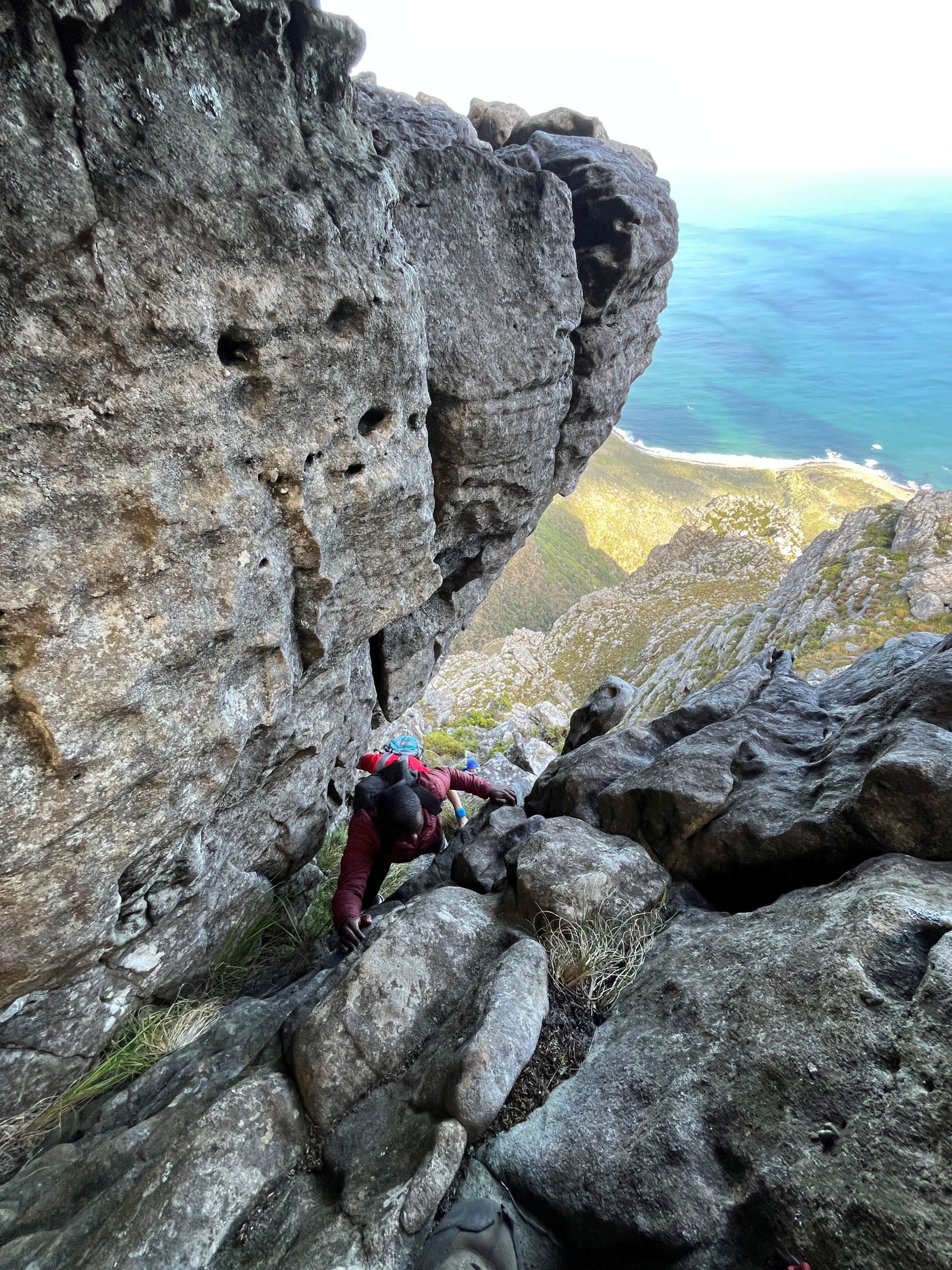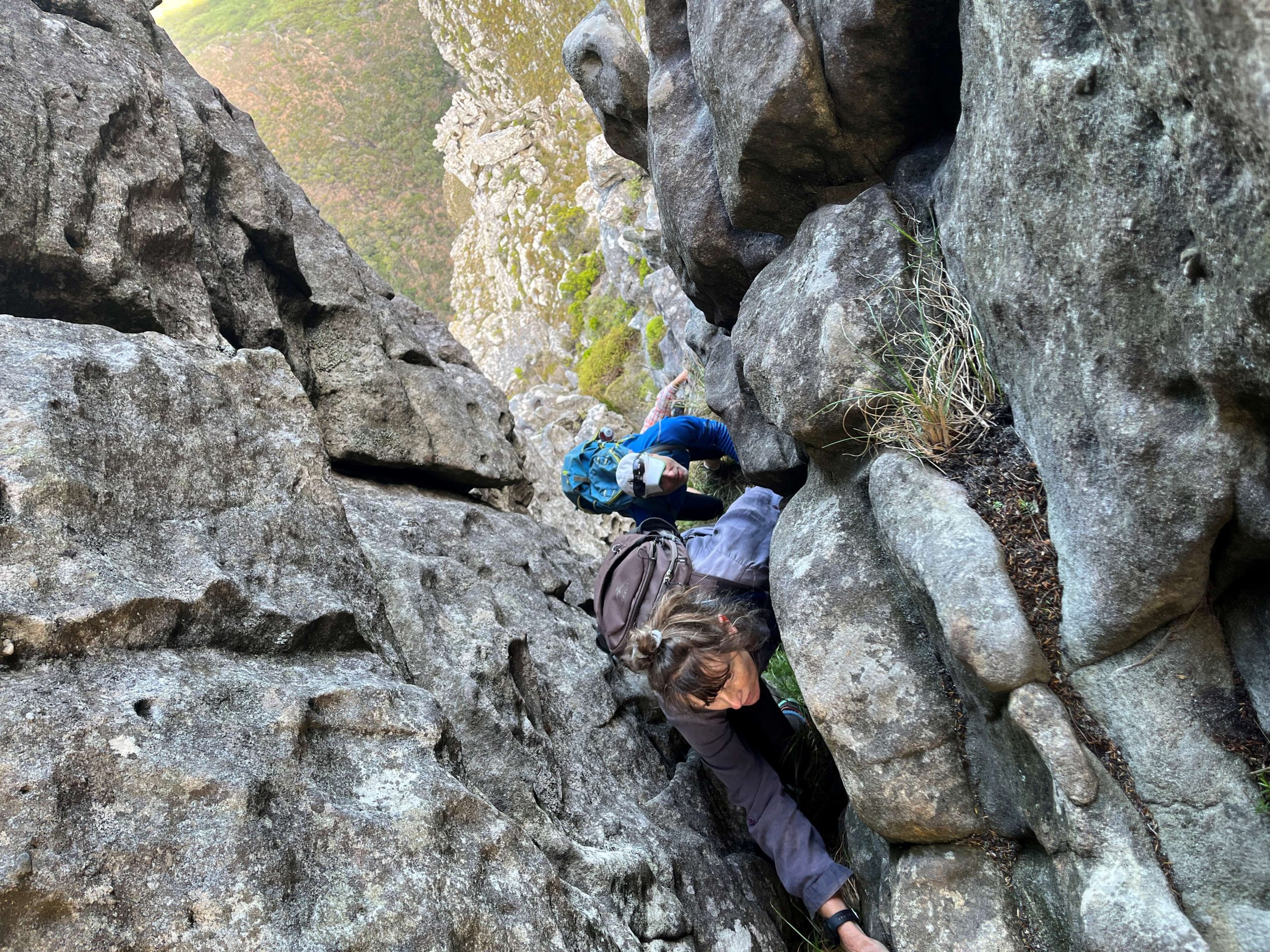 Rather than committing to the sustained B-grade slog up the Slangolie side of the buttress, we opted for a more varied and engaging line, linking pitches from both the Traverse and Step-Over routes to gain the top. The variation provided enjoyable movement and steady technical interest throughout.