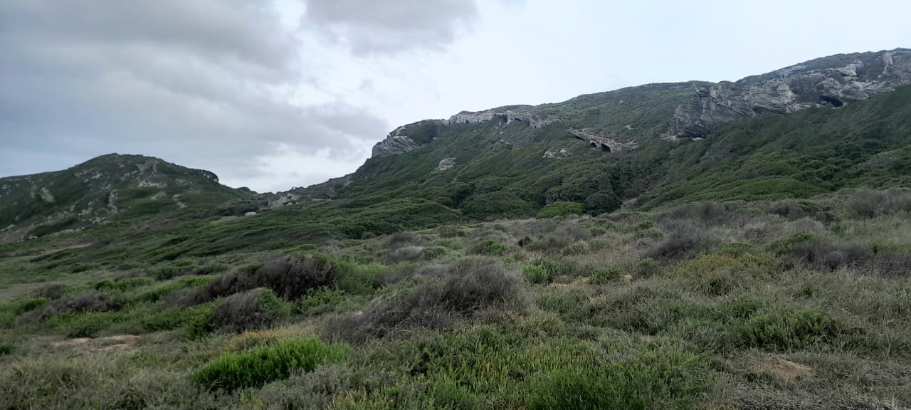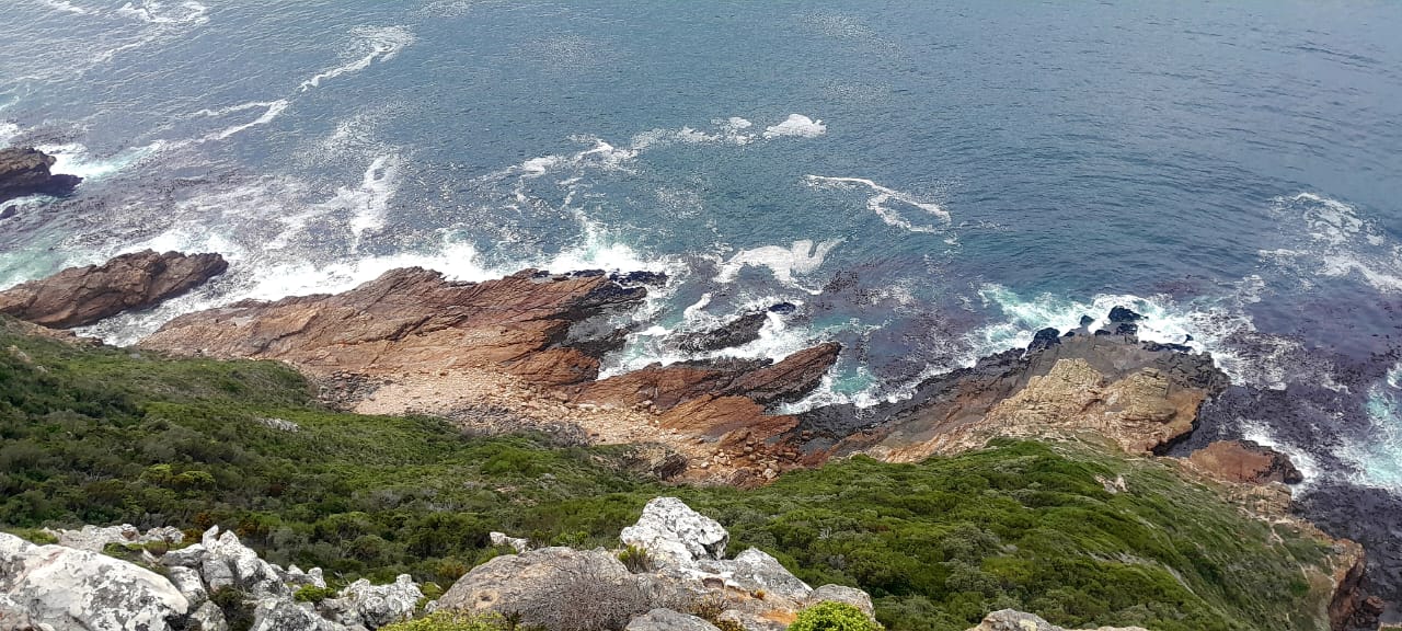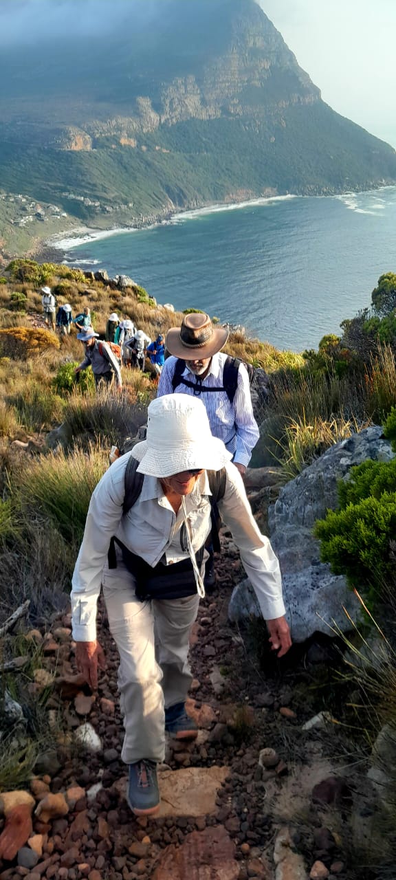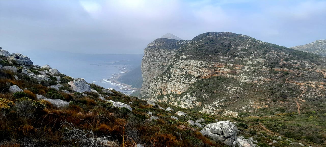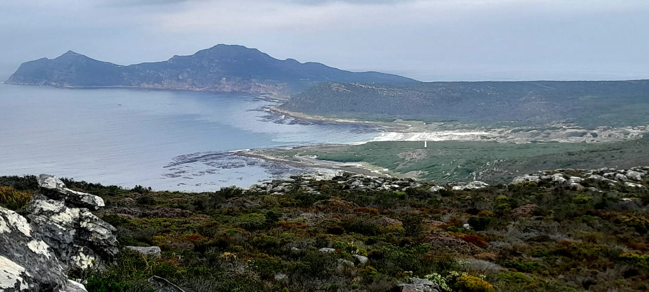 The route runs from the viewpoint about a kilometre inside the entrance to the Cape of Good Hope section of the Table Mountain National Park to Buffels Bay. It is undulating and rocky but no serious scrambling is required. We climbed to the top of Judas Peak and followed the ridge of Die Boer, but skirted around Paulsberg. At Kanonkop, we turned left and made our way down to the old lime kiln, at sea level.